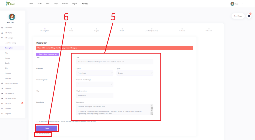 2b. Add Listing Description as prompted