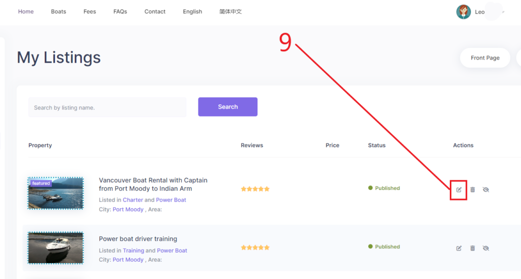 3. Owners Modify a published listing