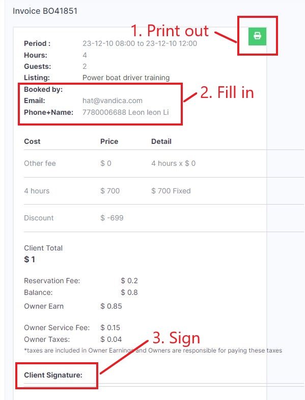 5. Sign your Boat Rental or Charter Confirmation